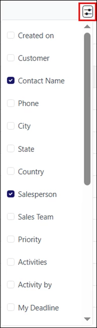 Additional columns, such as Customer, City, Phone, etc., can be added by clicking the Filters icon in the top-right corner of the list.