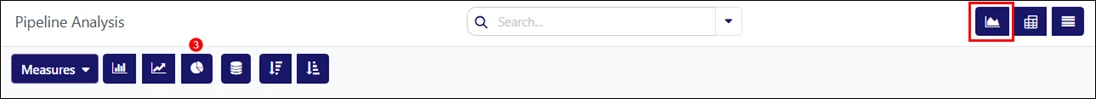 The following screenshots show the Pipeline Analysis in graph view, using two formats: bar and pie charts.